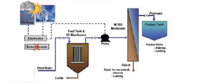 rosi系統由三個關鍵部分構成:通過太陽能/風能驅動的水泵,高品質超濾器,納米過濾器/反滲透膜。